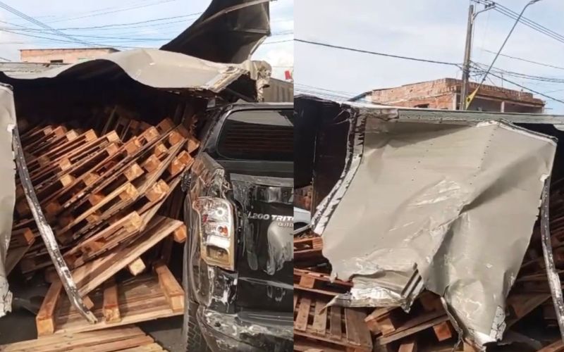 De acordo com informações, o veículo perdeu o controle em um trecho de descida, arrastou uma picape Strada, um Volkswagen Polo e colidiu contra os muros de duas casas. O baú do caminhão se rompeu, espalhando pallets sobre a pista e os veículos.