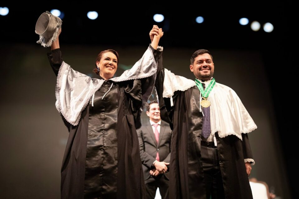 “Para mim é emocionante estar participando dessa festa, dessa solenidade da nossa comunidade, da querida UEA. Eu tenho uma admiração pela UEA profunda. Primeiro porque ela tem políticas afirmativas que impactam. São políticas afirmativas de coragem e que, realmente, trazem resultados de levar ensino superior não somente para a capital mas, sobretudo, para o interior”, declarou Jeibson Justiniano.