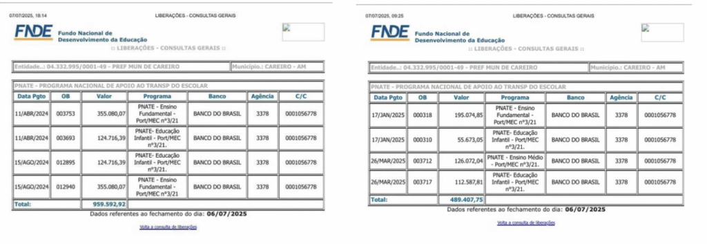 Os barqueiros afirmam que, mesmo sem contrato formal em mãos, continuam sendo cobrados para manter o serviço ativo, sob a promessa de que “o dinheiro logo será liberado”. O caso levanta suspeitas sobre a falta de transparência na execução do PNATE, já que os repasses federais são monitorados publicamente, mas a aplicação local fica sob responsabilidade da gestão municipal.